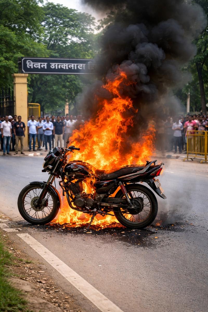 चलती बाइक में अचानक भड़की आग, जिला न्यायालय क्षेत्र में अफरा-तफरी
