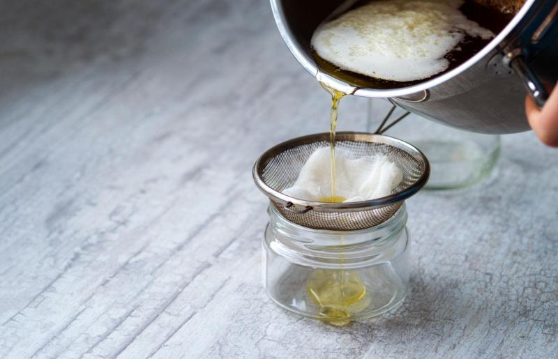 जब तेल पूरी तरह अलग हो जाए, तो आंच बंद कर दें। मिश्रण के ठंडा होने पर इसे साफ कपड़े या छलनी की सहायता से छान लें। आपका घर पर बना शुद्ध मूंगफली का तेल तैयार है। इसे किसी कांच की बोतल में भरकर रखें और अपनी रसोई में उपयोग करें।