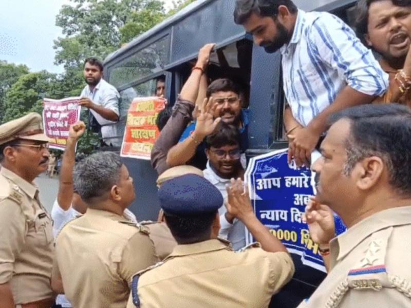 भोपाल में हंगामा: प्रदर्शनकारी शिक्षक भर्ती अभ्यर्थियों को पुलिस ने हिरासत में लिया