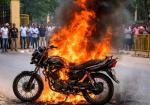 चलती बाइक में अचानक भड़की आग, जिला न्यायालय क्षेत्र में अफरा-तफरी -