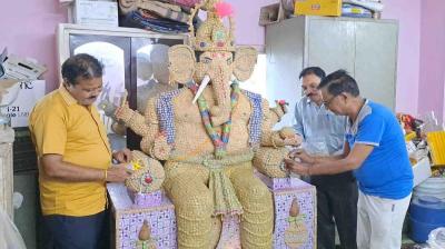 पर्यावरण के प्रति जागरूकता का प्रतीक बनी सोयाबीन से निर्मित गणेश प्रतिमा