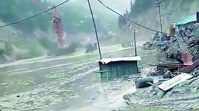 हिमाचल में बाढ़ का असर: निर्माणाधीन शोंगटोंग जल परियोजना के बैराज में घुसा बाढ़ का पानी