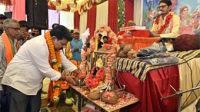 उपमुख्यमंत्री विजय शर्मा कबीरधाम जिला के ग्राम मदनपुर में आयोजित भागवत गीता महापुराण में हुए शामिल
