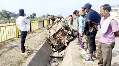 सड़क दुर्घटना में कार के उड़े परखच्चे, चालक घायल